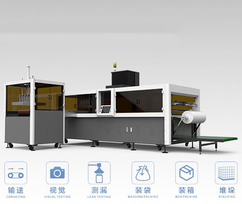 無需人工操作,掛袋、入瓶、堆垛等動作均由機器自動完成,根據瓶身大小及裝袋數量而定,產量可以達到12000瓶/小時。